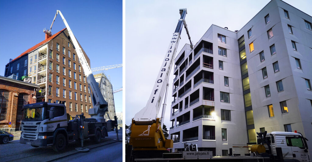 – Meihin kannattaa olla yhteydessä jo suunnitteluvaiheessa hyvin matalalla kynnyksellä. Oikealla, ennakkoon suunnitellulla kalustolla laitekustannukset ovat hyvin selvillä. Ennakkoon suunniteltu kalusto karsii laitevuokrasta koituvia kuluja, mutta myös kaikkia työmaan välillisiä kuluja kuten logistiikkaa. Ennen kaikkea tällä on suuri vaikutus työturvallisuuteen sekä työn tehokkuuteen. Ennakkoon suunniteltu kalusto palvelee myös rakennuksen koko elinkaaren ajan sen kunnossapidon tarpeita ajatellen. Tulemme aina tekemään ensin työmaakatselmuksen ja varmistamme, että työhön valitaan juuri oikea henkilönostin. Asiakkaan tehtävä ei ole kuluttaa aikaa ja rahaa sen miettimiseen yksin, Rytilahti muistuttaa.